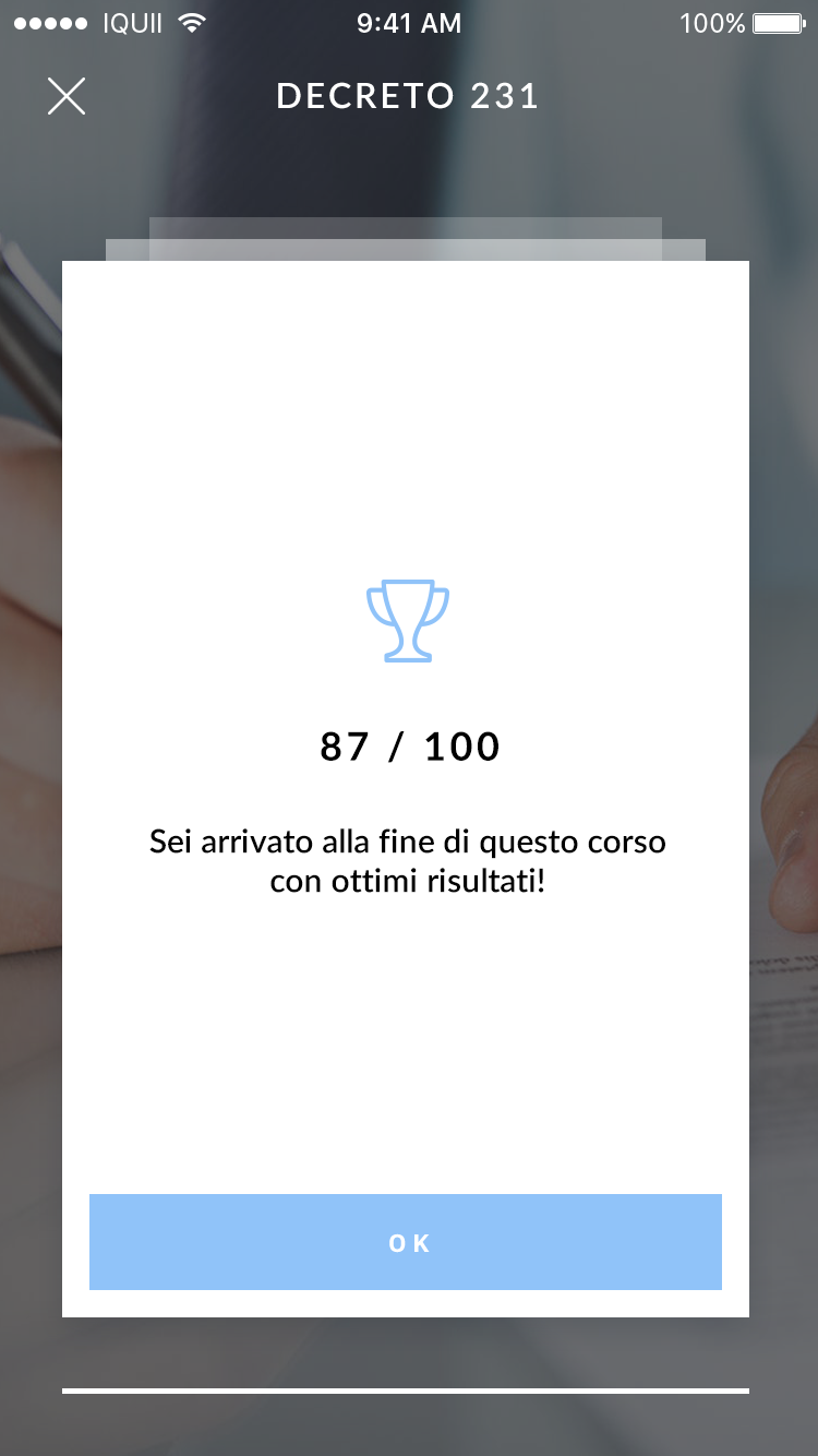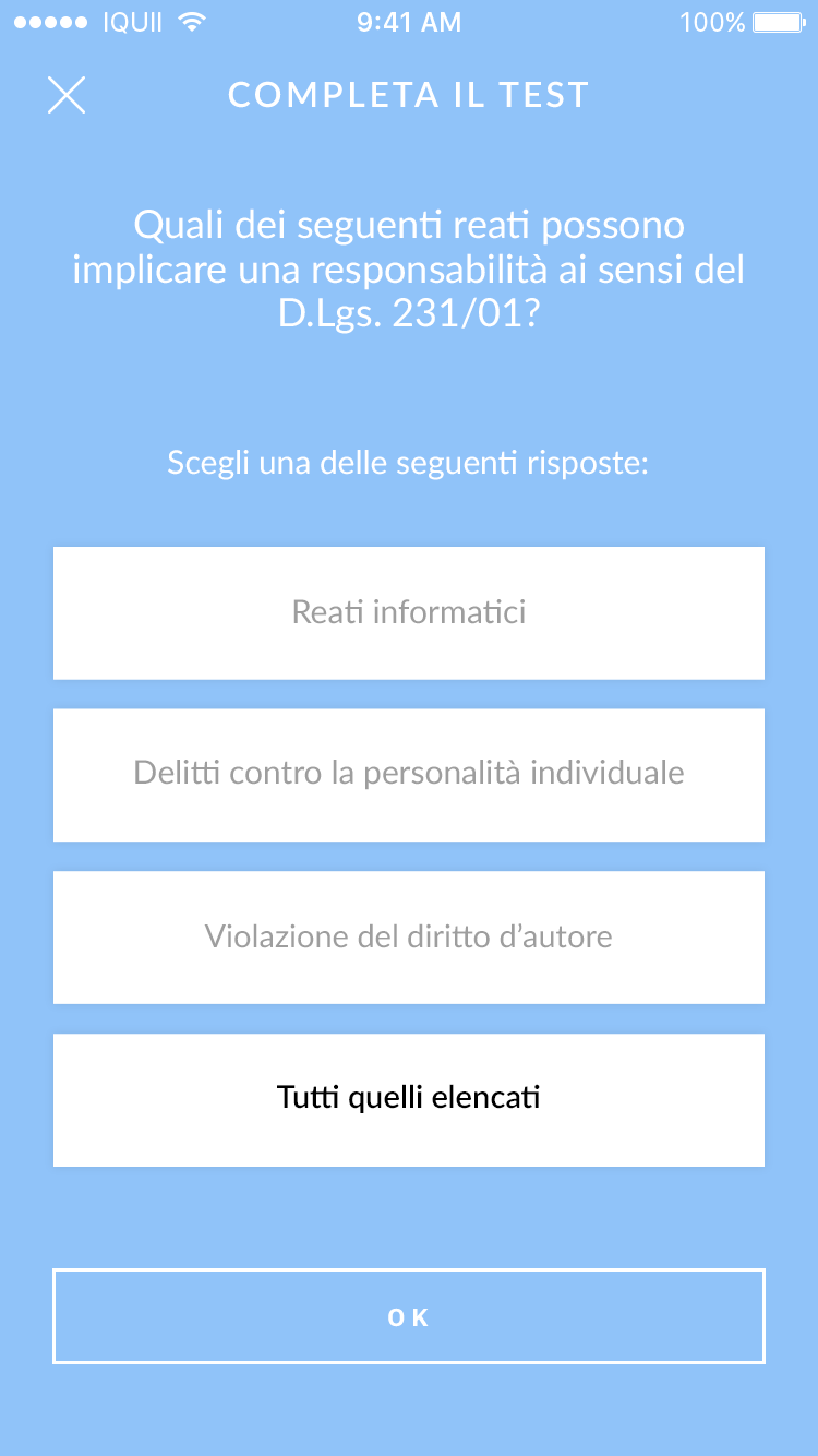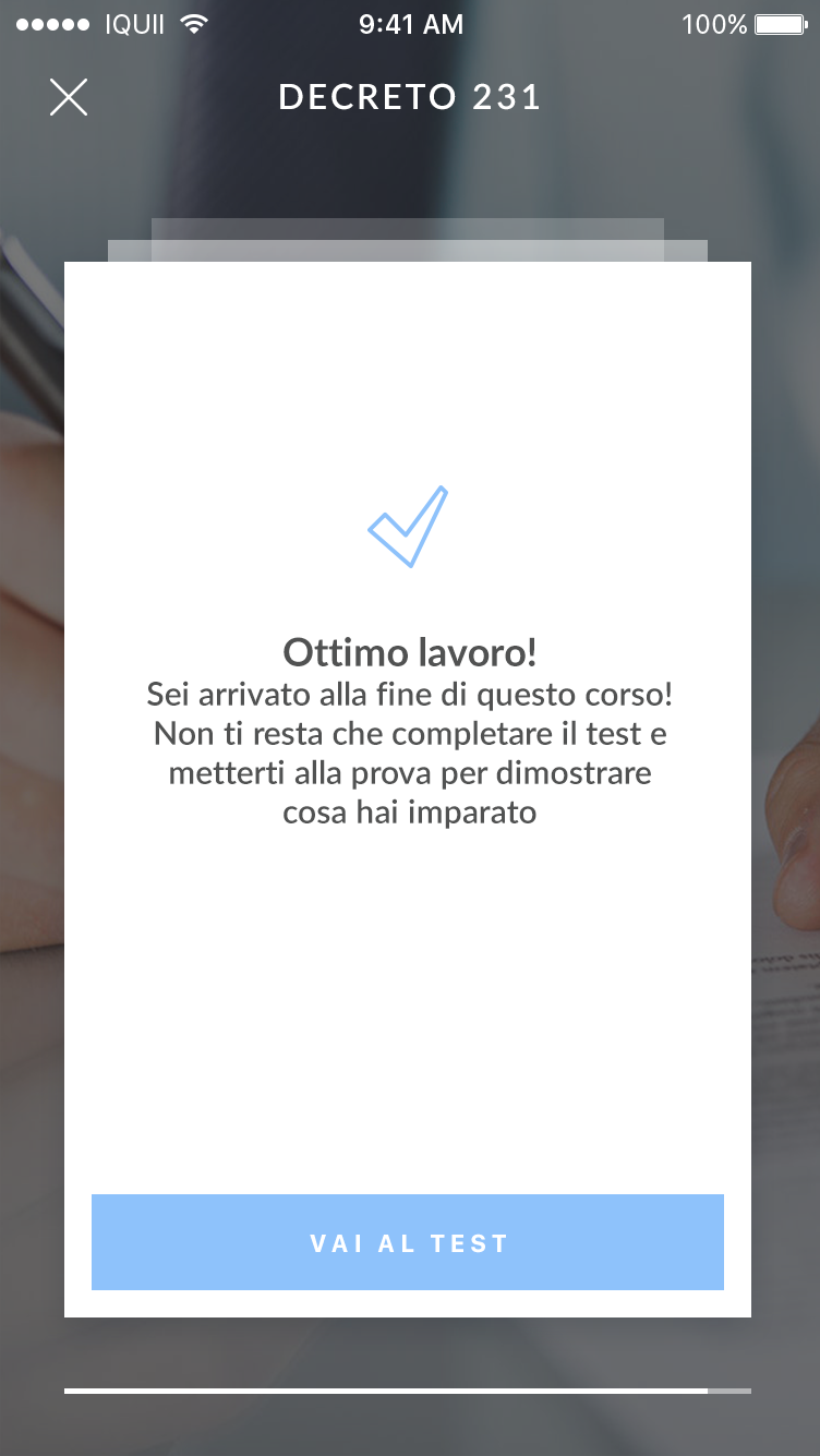 L’uso di card multimediali con video e audio semplifica e velocizza l’apprendimento. I test di fine corso permettono all’utente di verificare le conoscenze acquisite e ripetere le lezioni in ogni momento. Il Pannello di Controllo offre una gestione flessibile dei contenuti.