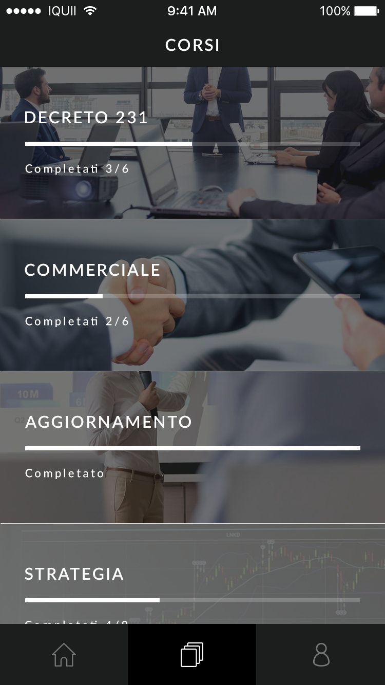 La gestione dell’app mediante Pannello di Controllo consente totale autonomia e continuità dei corsi, assicura la proprietà del dato e il rispetto della privacy e permette il monitoraggio sullo stato di partecipazione, avanzamento e risultati dei corsi.